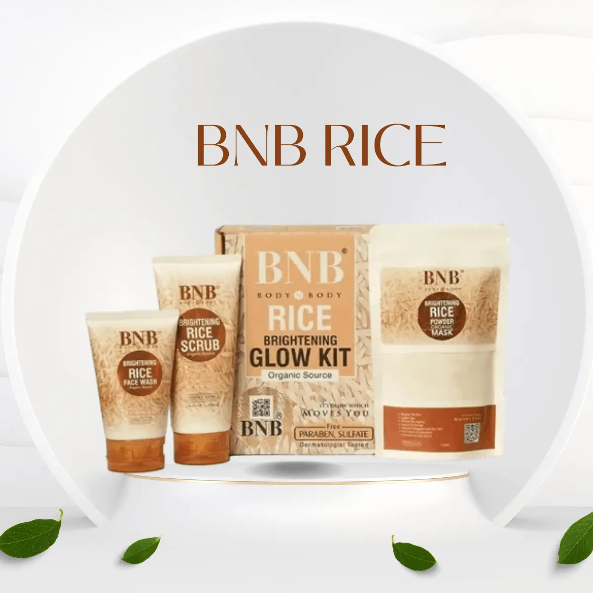 BNB Rice Extract Bright & Glow Kit ( Rice Face Wash + Rice Scrub + Rice Mask )